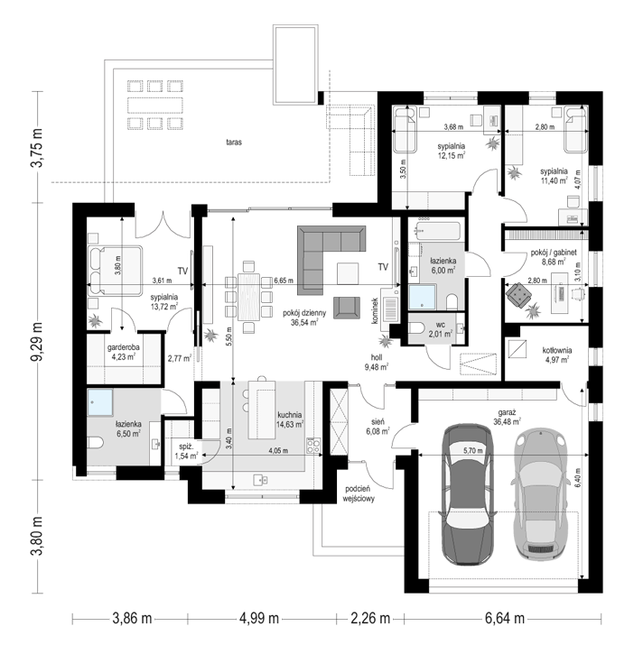 Projekt Domu Parterowy 1 Tft 714 1761m²